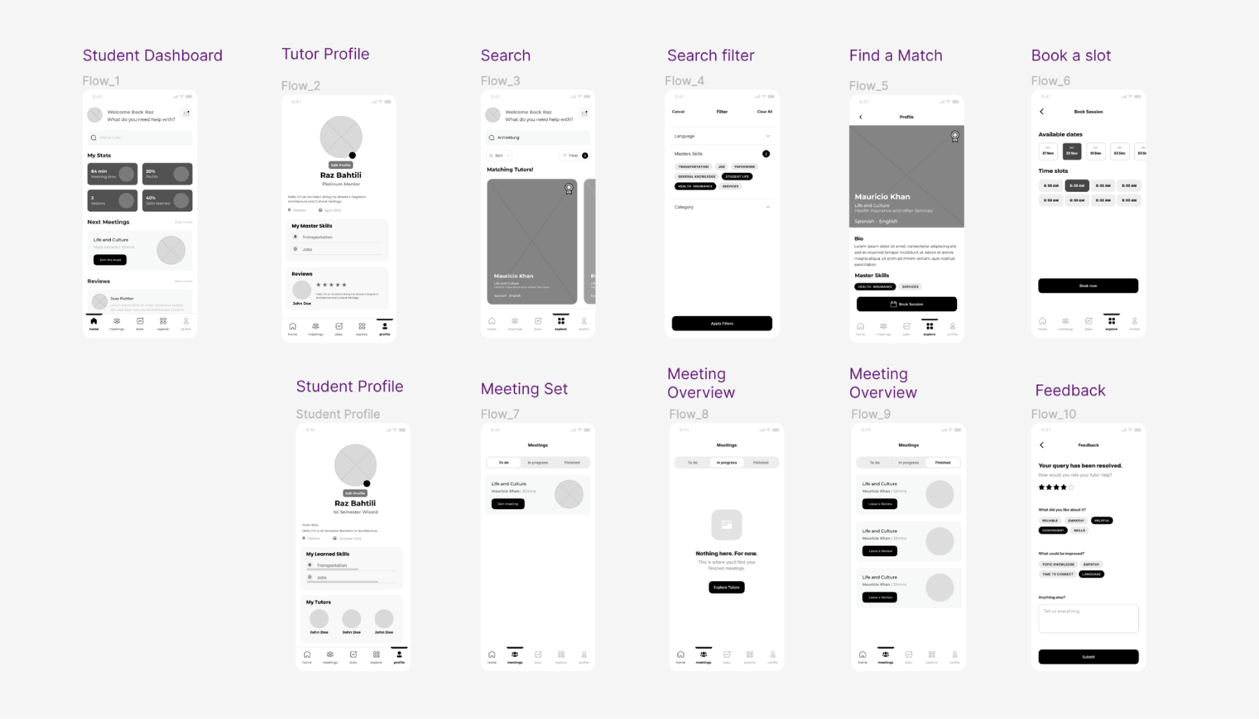 The Costumer Journey was made to map out the touch points of our main stakeholders, the student and the mentor.